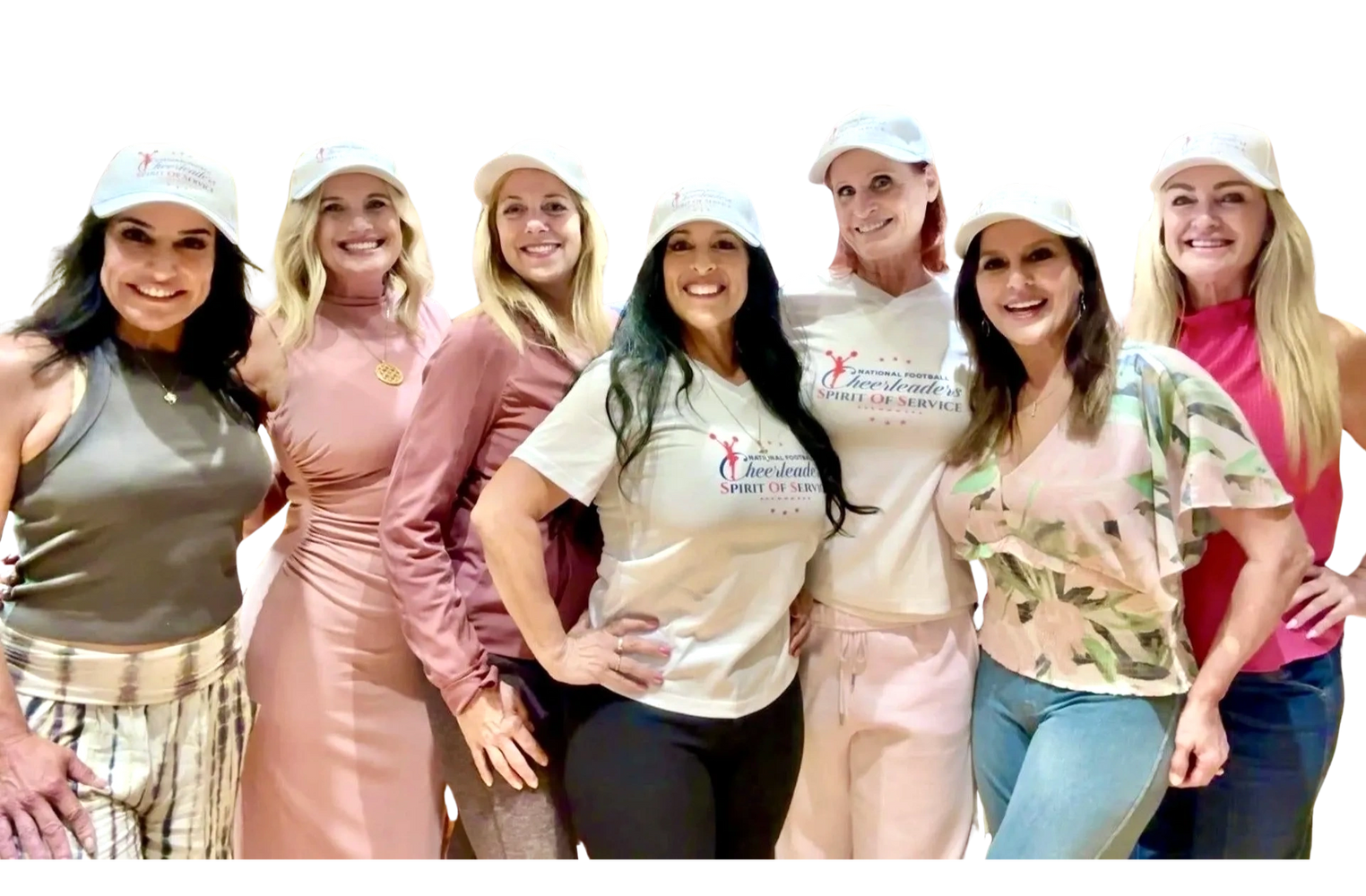 At National Football Cheerleaders Spirit of Service (NFCSOS), we bring together current and former national football cheerleaders with a shared passion for giving back. United by our sisterhood and spirit, we volunteer, fundraise, and partner with nonprofits across the country to uplift communities, spread hope, and make a lasting impact.